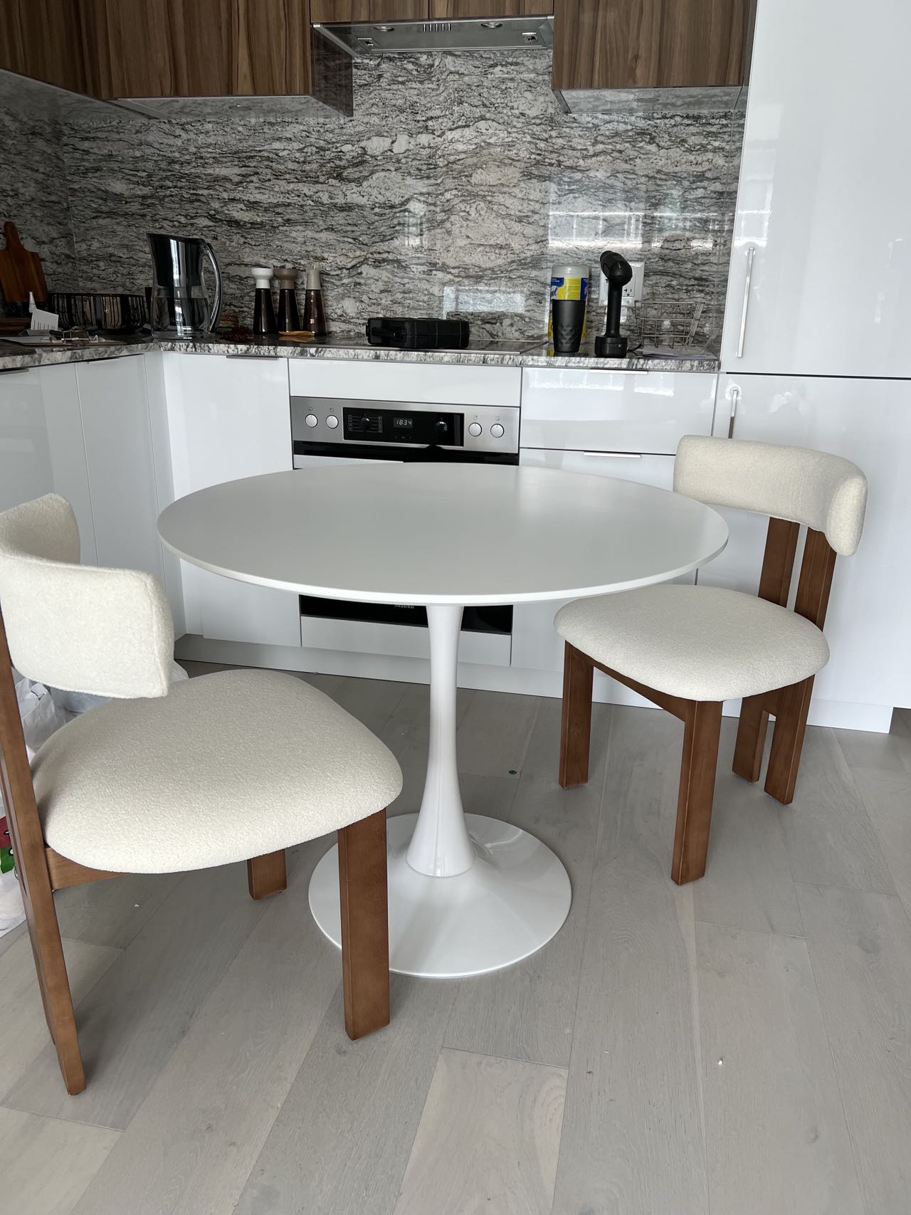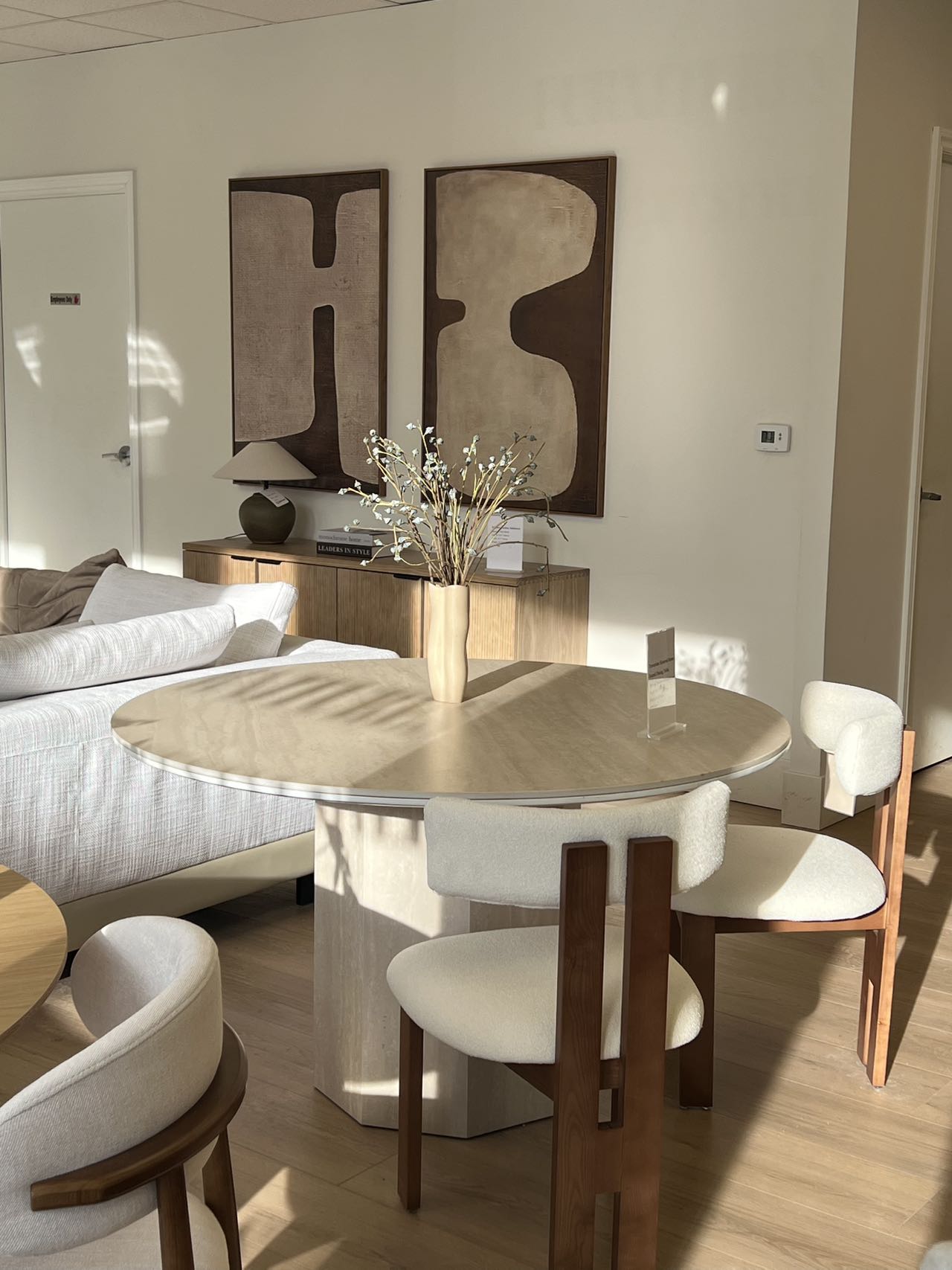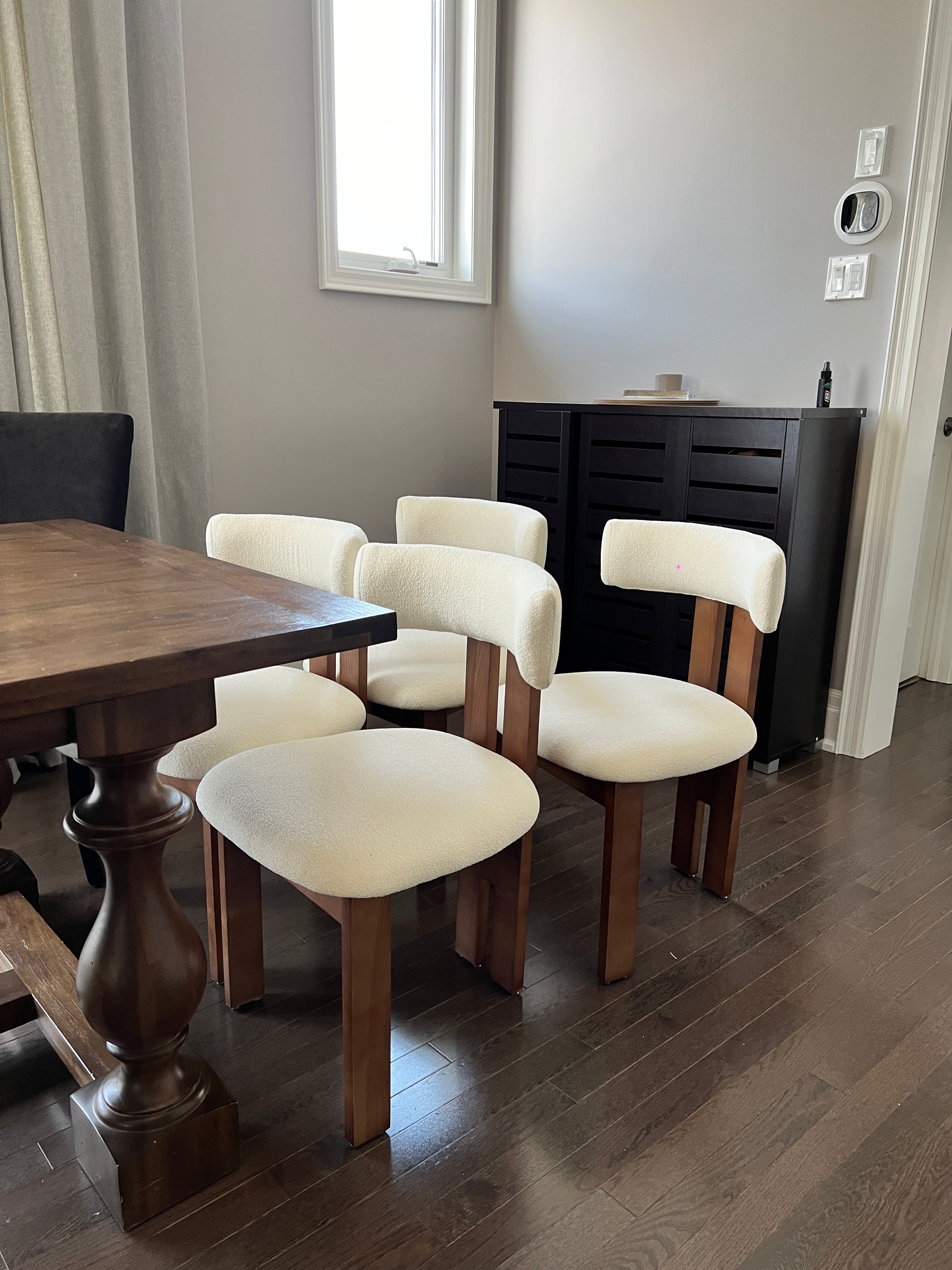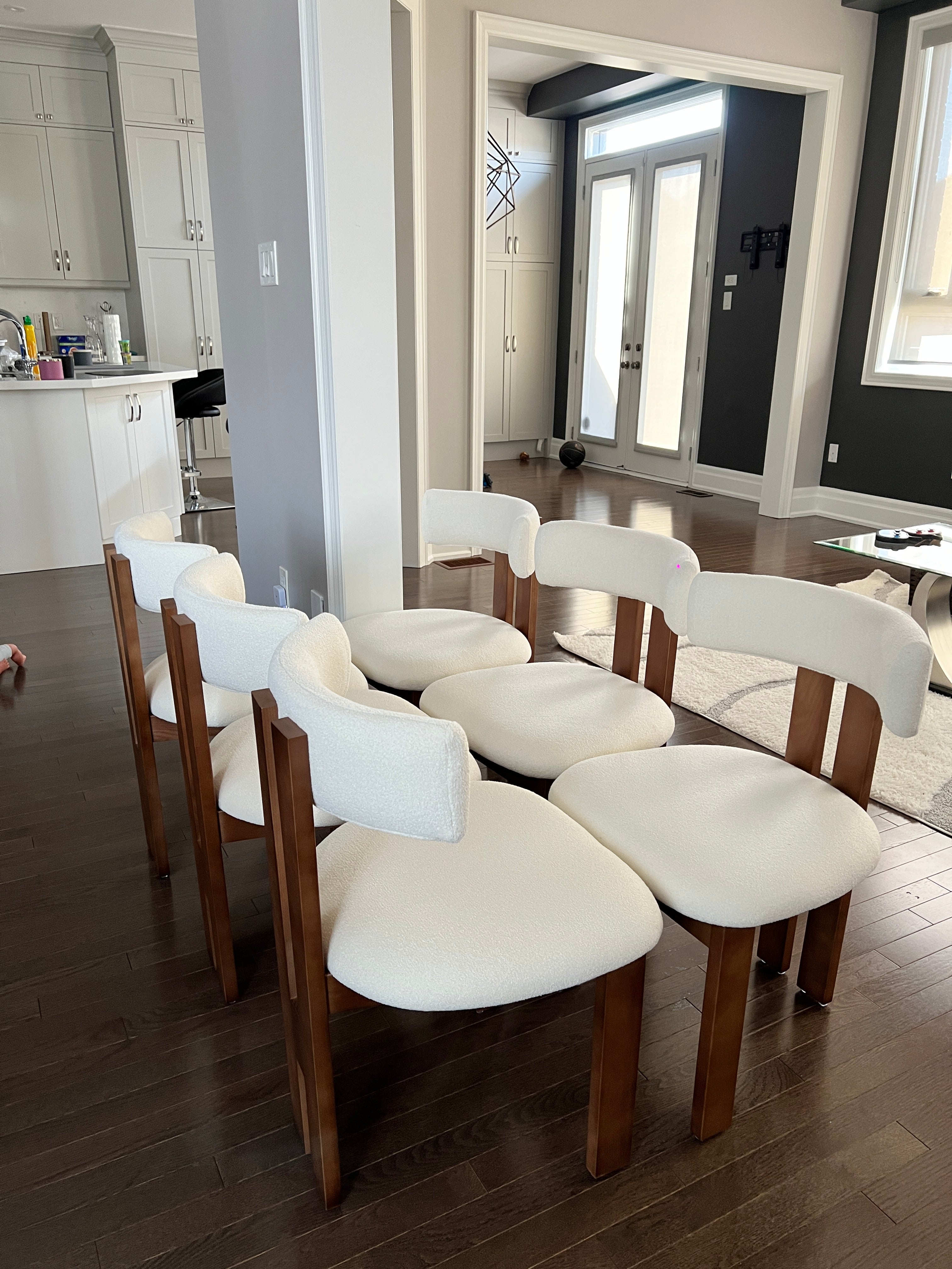 Elevate your dining experience with the Wool Bouclé Dining Side Chair. This chair features a minimalist design with plush wool bouclé upholstery, providing both comfort and style. The elegant white ash wood legs add a touch of natural beauty and stability to the chair, complementing the soft, textured fabric. Perfect for modern and contemporary dining spaces, these chairs add a touch of elegance and sophistication to any dining area.
