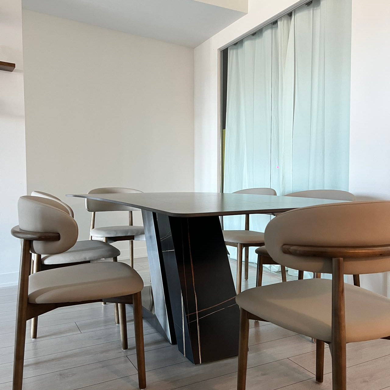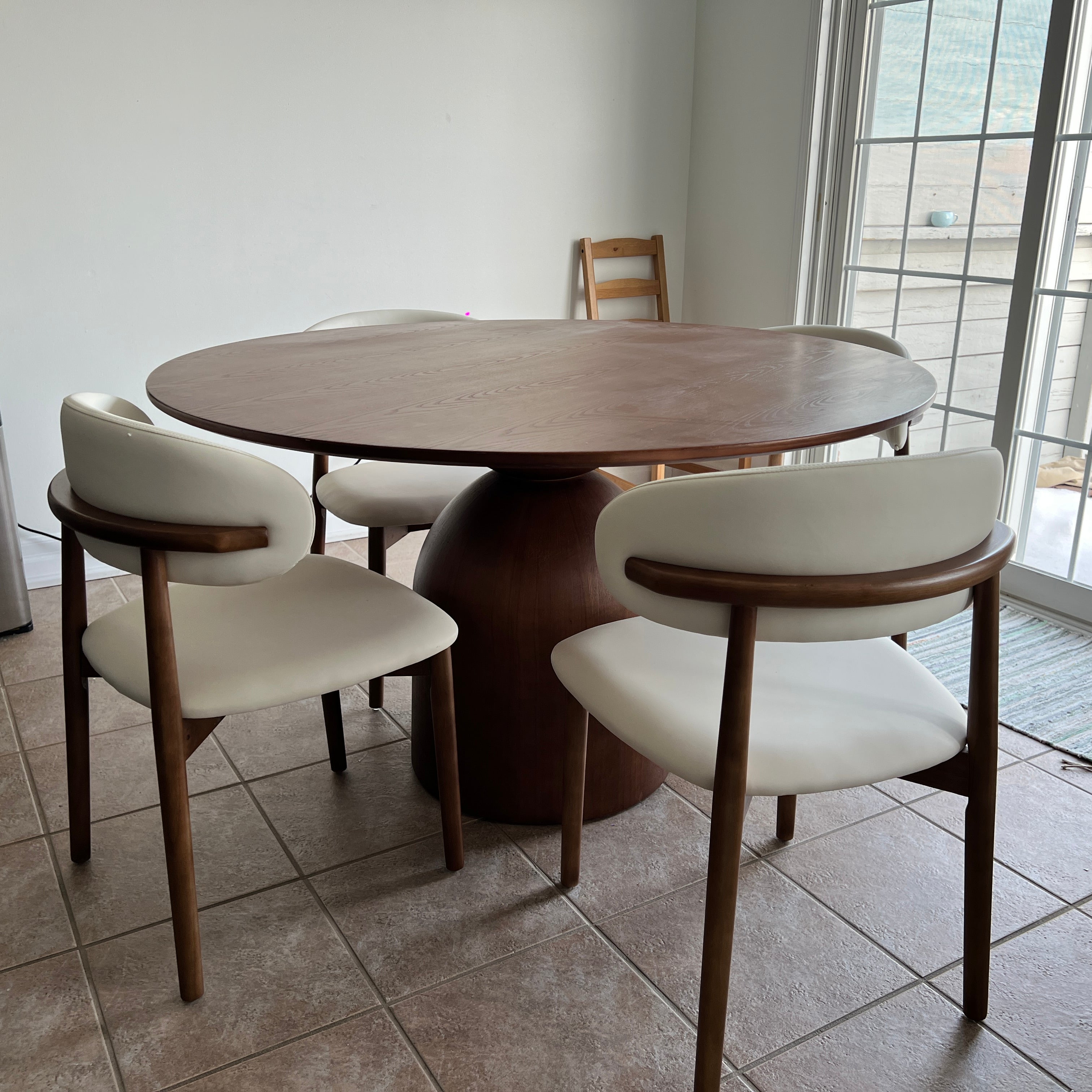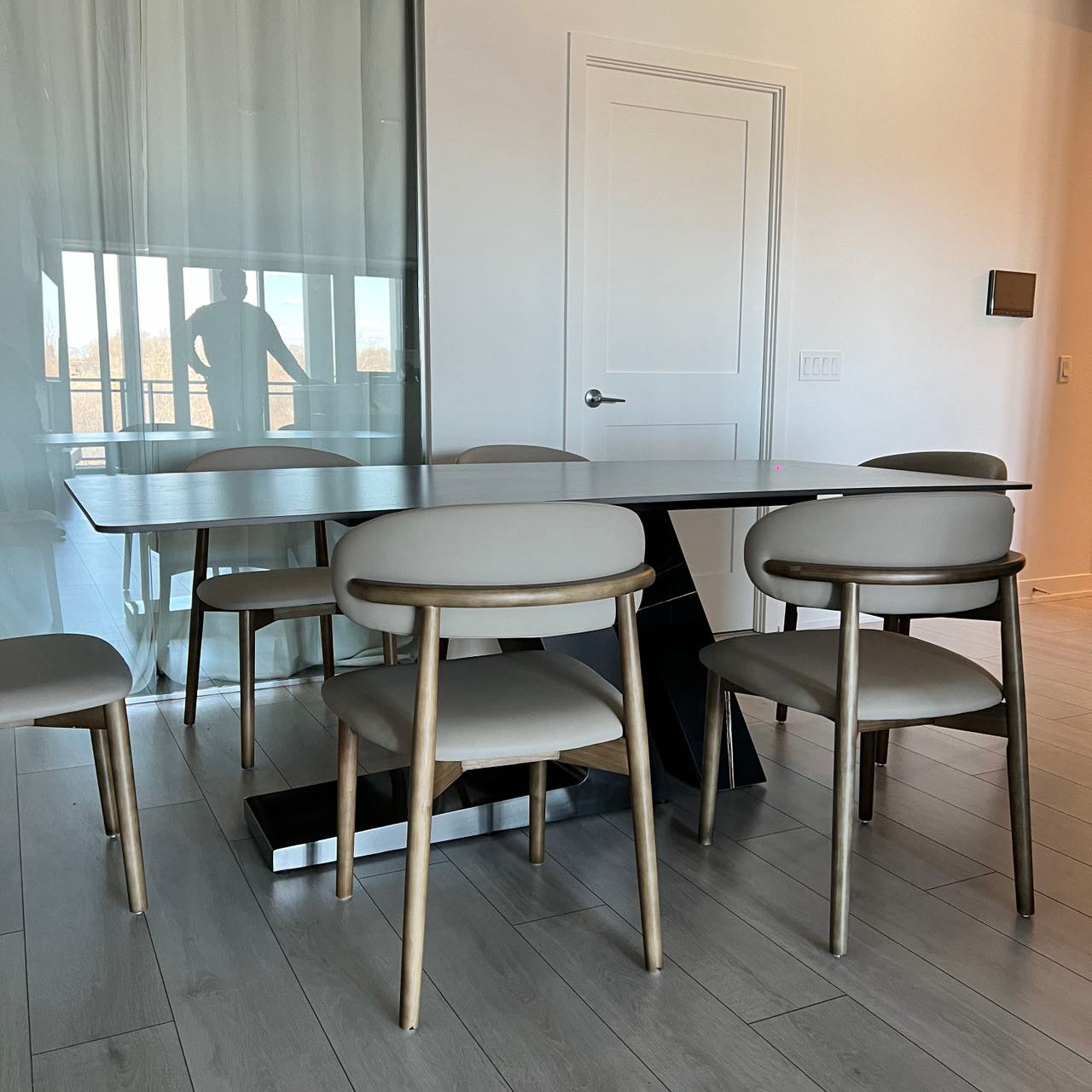 Elevate your dining space with the PU leather Ash Wood Dining Side Chair. This elegant chair features higher quality PU leather and a sturdy ash wood frame, combining comfort with style. The curved backrest and padded seat provide ergonomic support, ensuring a comfortable dining experience. Its minimalist design seamlessly fits into modern and contemporary decor, making it an ideal addition to any dining area.