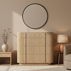 The Elias Oak Dresser blends sculptural detail with modern functionality. Crafted from solid oak with a natural finish, its vertical fluted design creates a striking texture while maintaining a clean, minimalist silhouette. Four spacious drawers provide ample storage for clothing and essentials, making it a versatile piece that elevates both style and practicality. Perfect for bedrooms or living spaces that value timeless design and natural warmth.