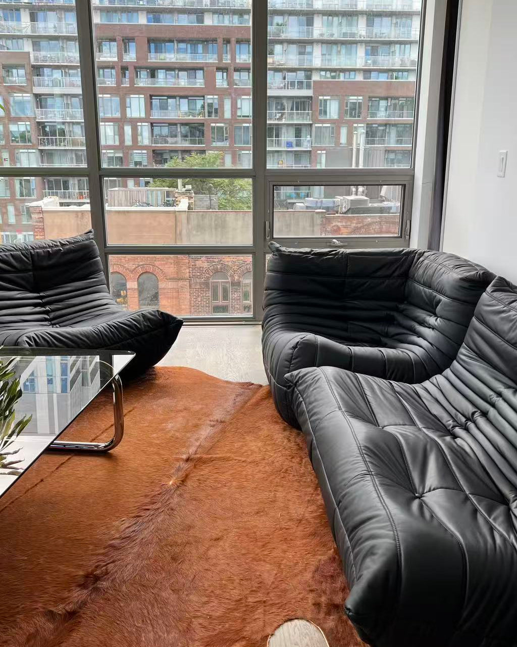 The reproduction TOGO Lounger features its signature low-slung, modular silhouette with plush, overstuffed quilted cushions. Its soft, organic form offers exceptional comfort, with multi-density padding that creates an enveloping, ergonomic lounge experience.