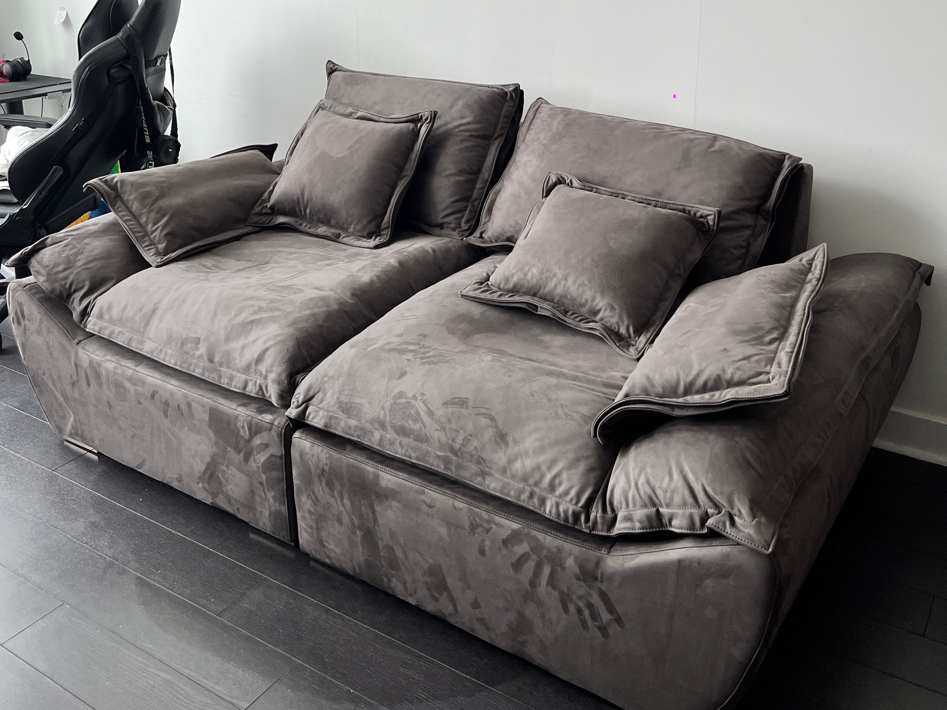 Experience ultimate relaxation with the Ultra Comfort Sailing-Shaped Sofa, designed to redefine modern comfort. Wrapped in durable, nubuck-like matte cloth, it offers a soft touch, effortless maintenance, and a contemporary deep graphite hue. Its adjustable backrest function allows you to customize your seating position, ensuring personalized comfort. With generously padded cushions and a sleek sailing-inspired silhouette, this sofa seamlessly combines style, functionality, and elegance to elevate any living space.