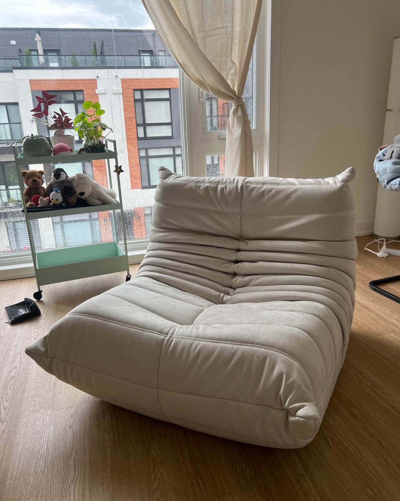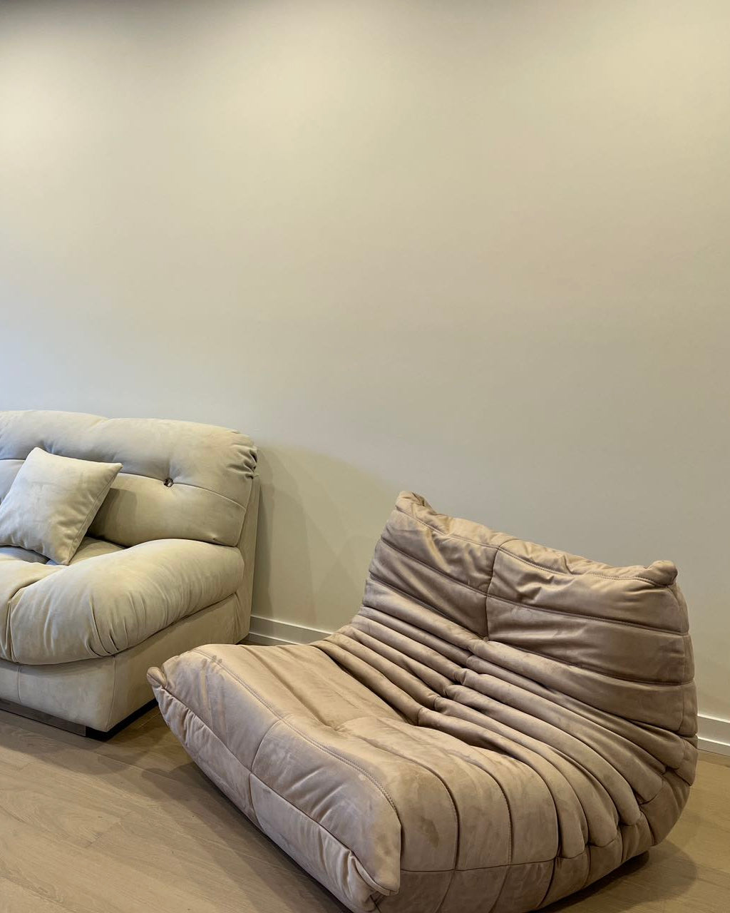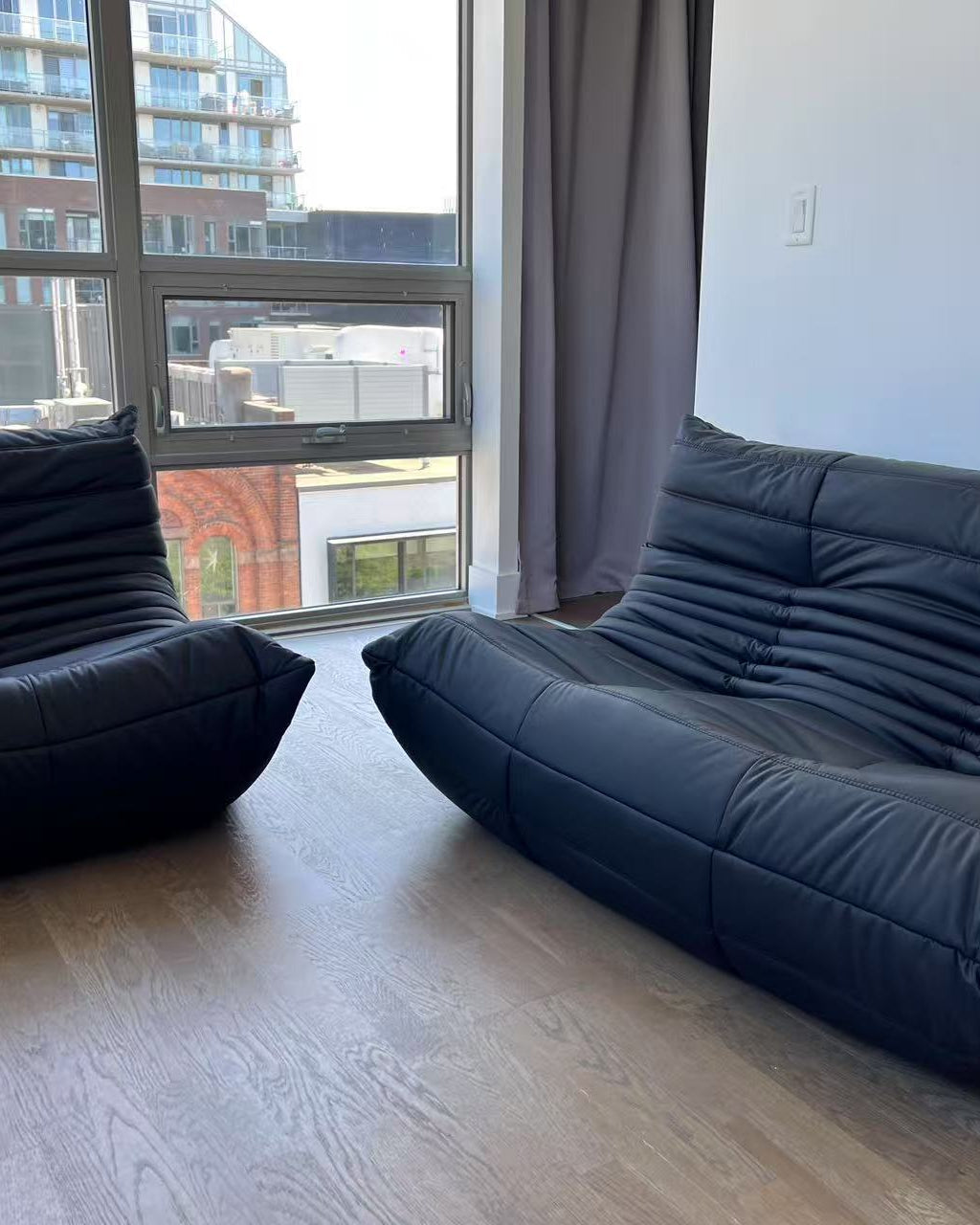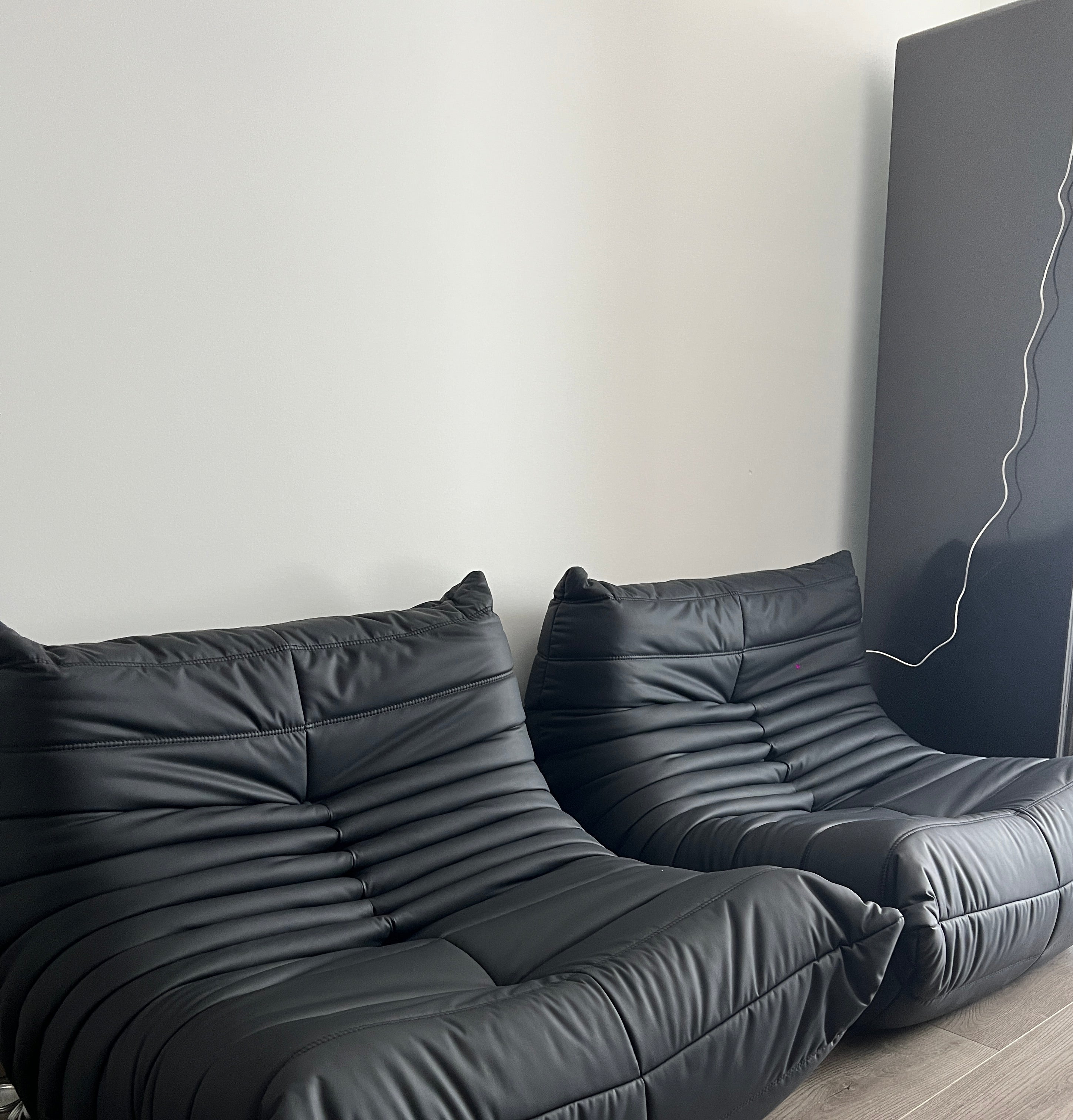 The reproduction TOGO lounger is known for its unique and instantly recognizable design. It features a distinctive low-slung, modular shape with multiple padded, quilted, and overstuffed cushions. Its appearance is characterized by its casual, relaxed, and organic form, with no sharp angles or rigid lines. The lounger is renowned for its exceptional comfort. Its multiple density padded cushions provide a cozy and enveloping seating experience, and the ergonomic design ensures that you can relax and lounge comfortably for hours. The sofa's deep seats and low profile encourage a casual and laid-back seating style.