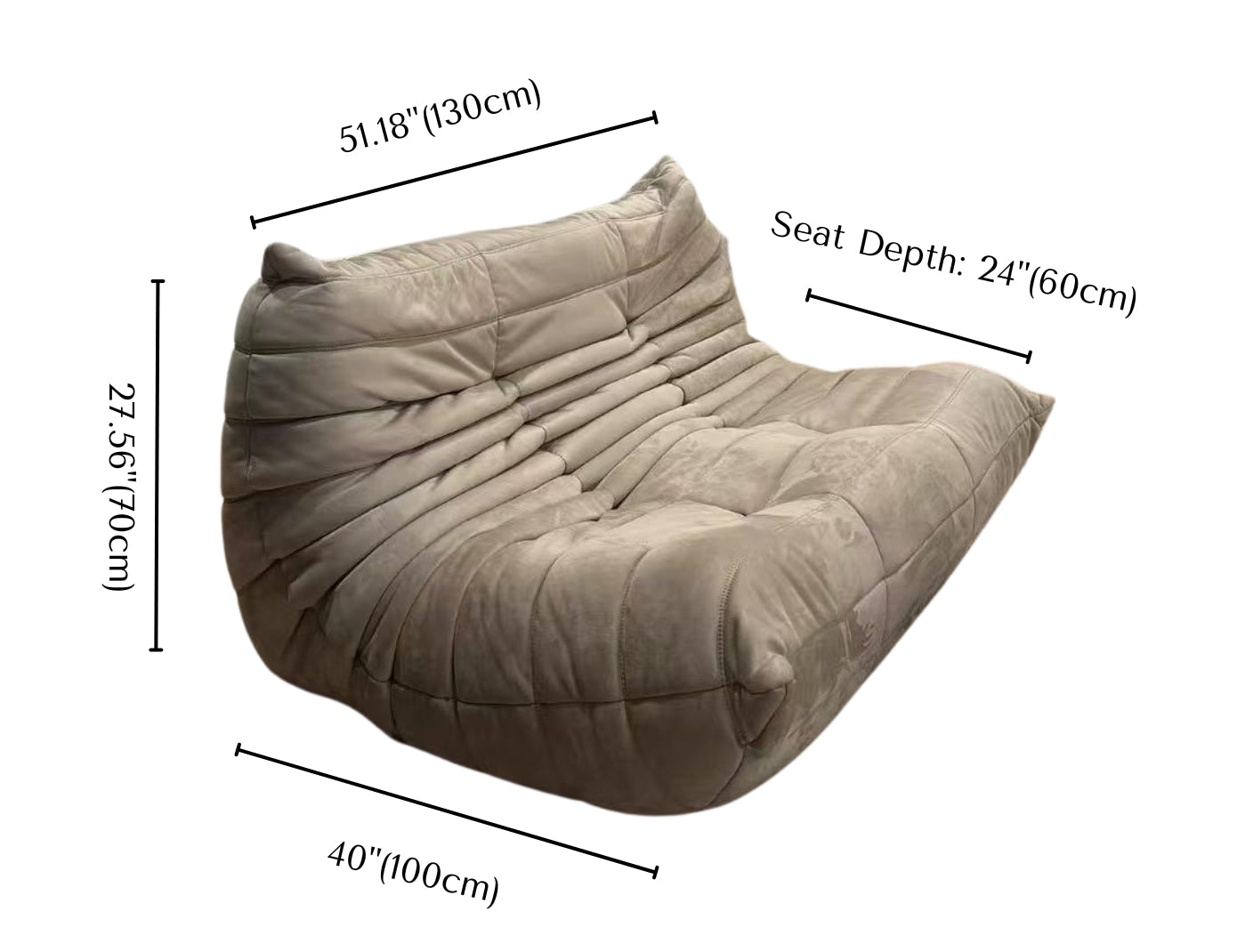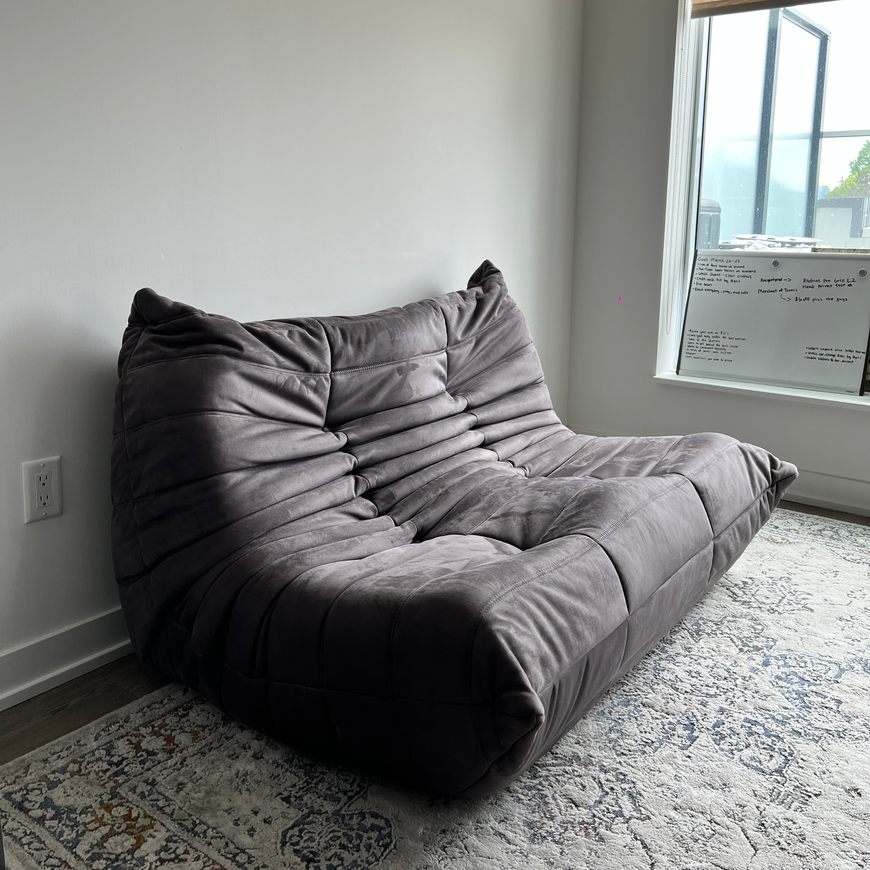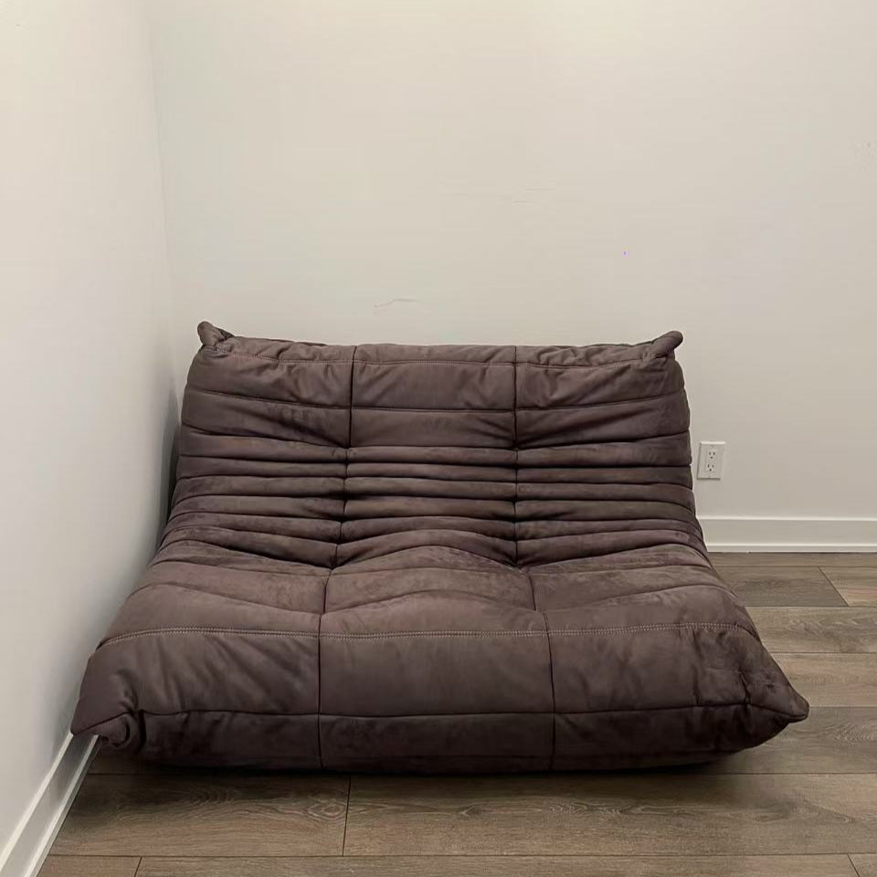Experience ultimate comfort and unique design with the reproduction TOGO Lounger. This lounger features a distinctive low-slung, modular shape with multiple padded, quilted, and overstuffed cushions for an exceptional seating experience. Made from high-quality suede fabric and multiple density foam, it provides a cozy and ergonomic lounging experience. Its deep seats and low profile encourage a casual, laid-back seating style, making it a perfect addition to any living space.