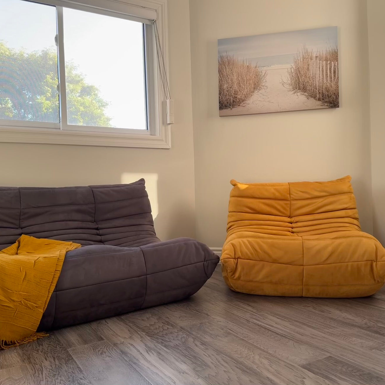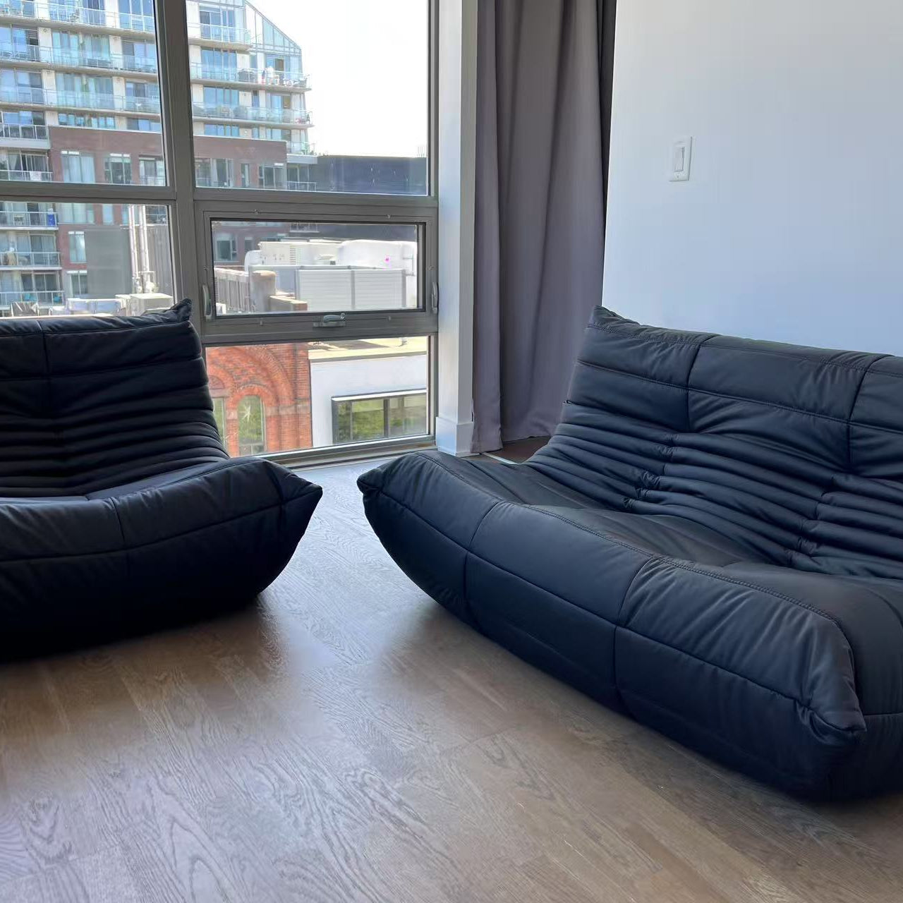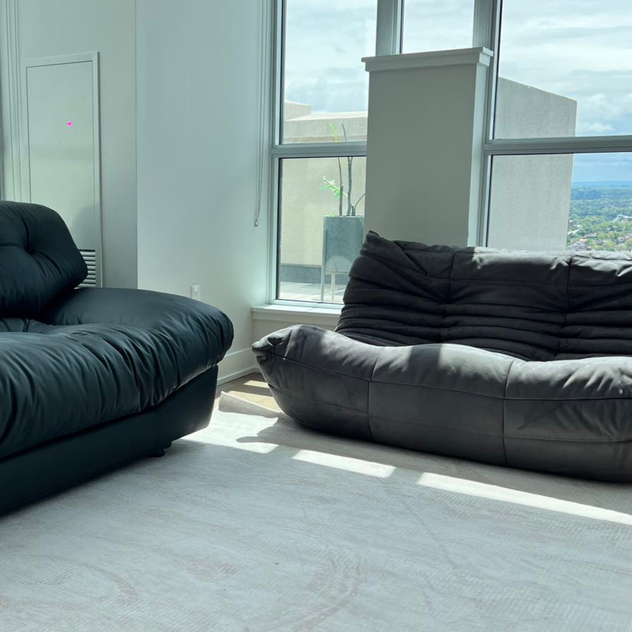 Experience ultimate comfort and unique design with the reproduction TOGO Lounger. This lounger features a distinctive low-slung, modular shape with multiple padded, quilted, and overstuffed cushions for an exceptional seating experience. Made from high-quality suede fabric and multiple density foam, it provides a cozy and ergonomic lounging experience. Its deep seats and low profile encourage a casual, laid-back seating style, making it a perfect addition to any living space.