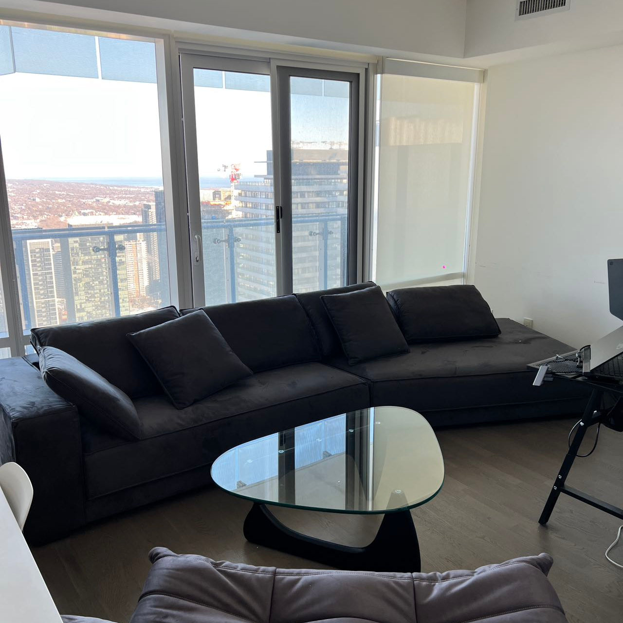 - Unique Design: Low-slung, modular shape with quilted cushions.