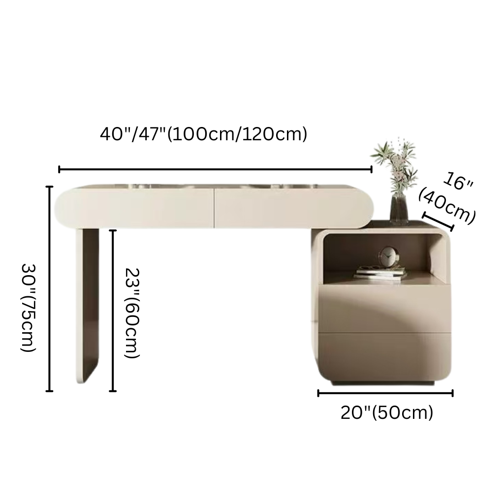 The Luxury Vanity Set boasts an opulent and sophisticated design, featuring intricate detailing, fine craftsmanship, and a timeless aesthetic that adds an air of grandeur to your space.The luxury vanity set uses E1 MDF board, ecofriendly waterbased paint, smooth edges,Russian pine cabinet and slient slide. The stool used high resilience foam and eco-friendly vegan leather. The mirror is cloud shape touch screen with three color and dimmable.