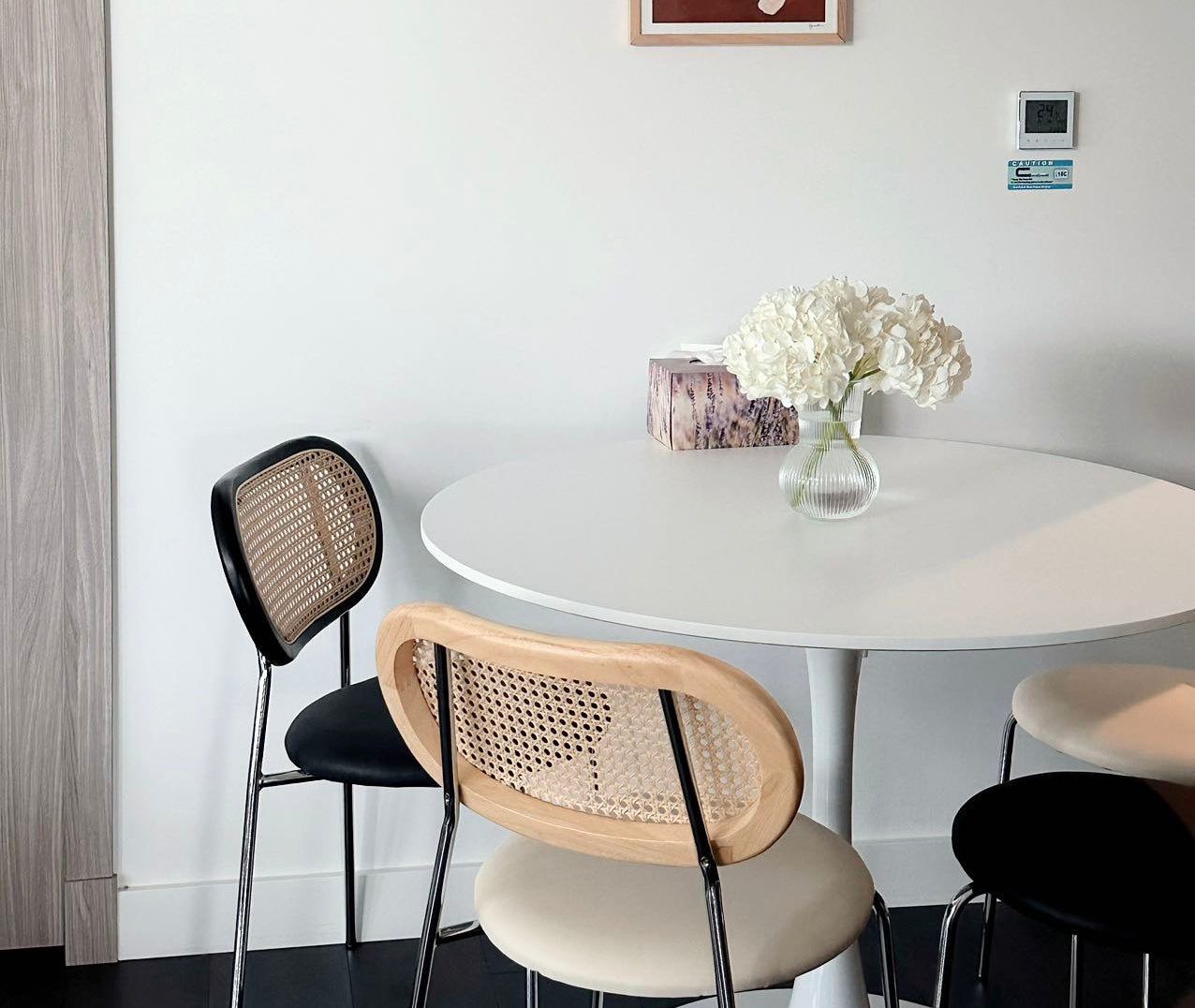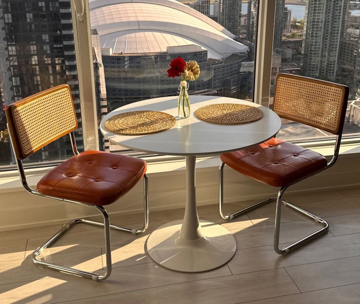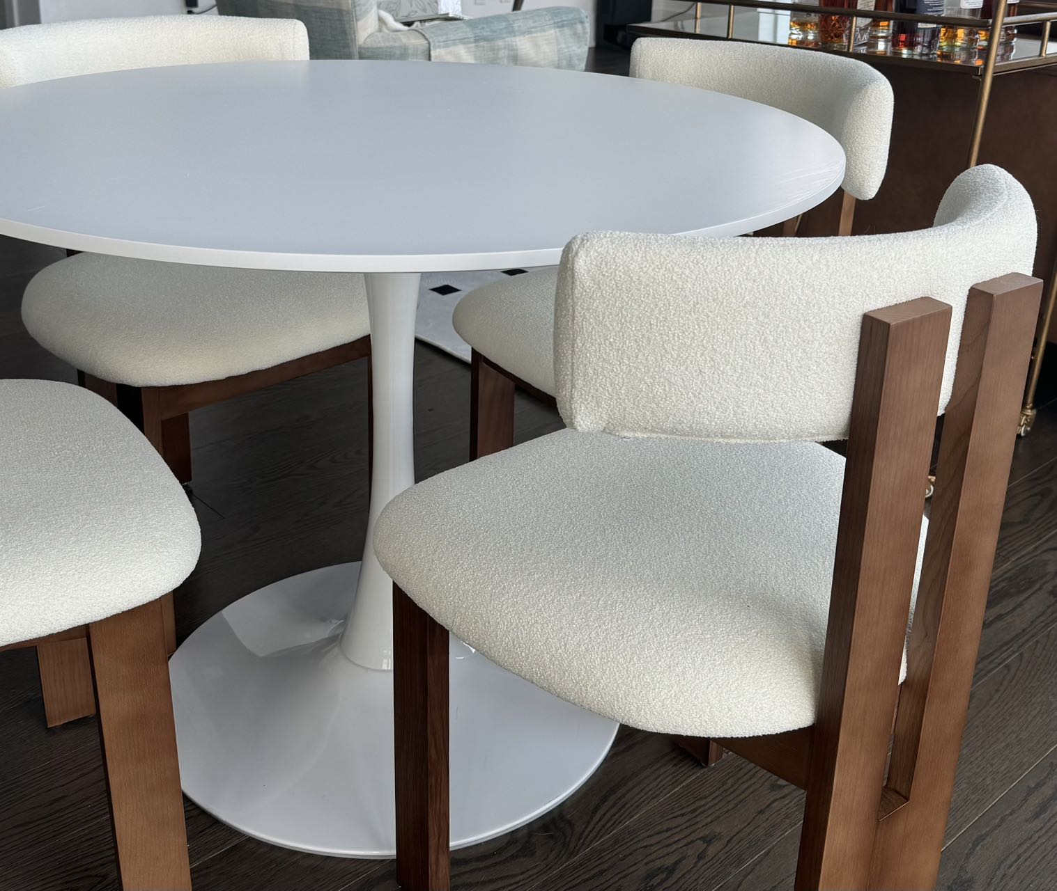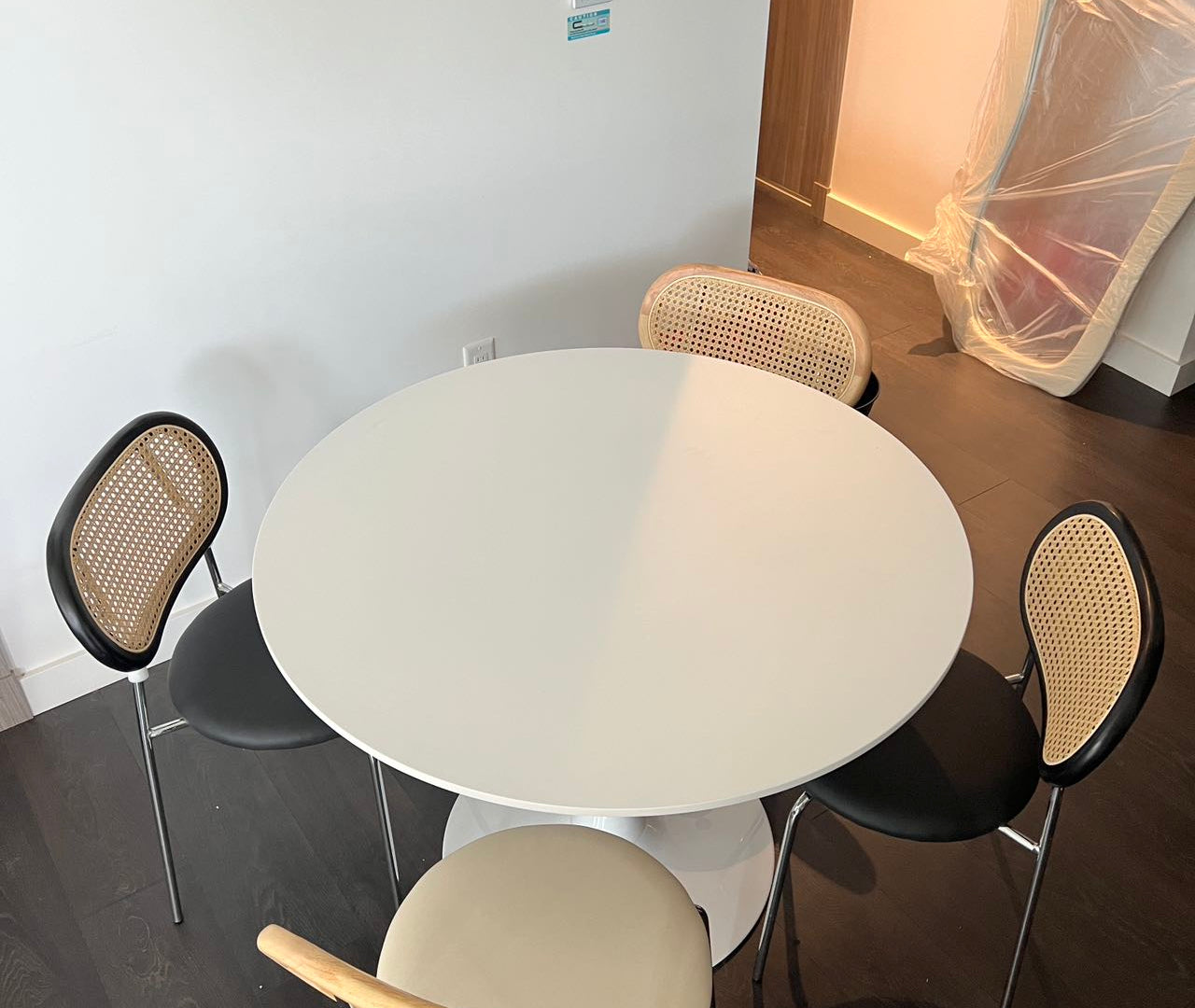 Enhance your dining area with the iconic Tulip Dining Table, a perfect blend of style and functionality. This table features a sleek, round white tabletop made of high-quality materials, supported by a single pedestal base that provides stability and a modern aesthetic. Its minimalist design seamlessly integrates into various interior styles, making it an ideal choice for kitchens, dining rooms, or even as a small conference table.