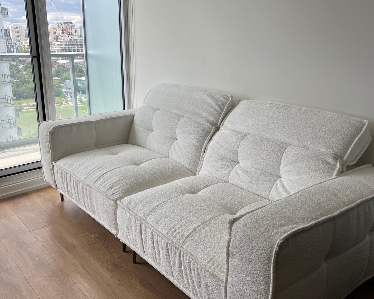 Transform your living area with the Chic Comfort Boucle Sofa, a perfect fusion of elegance and functionality. Featuring sumptuous wool boucle fabric, this sofa provides a warm and inviting feel. The adjustable backrests offer personalized comfort, making it ideal for various activities, whether you're lounging or hosting guests. Its sleek, modern design enhances any interior, while the robust construction guarantees longevity.