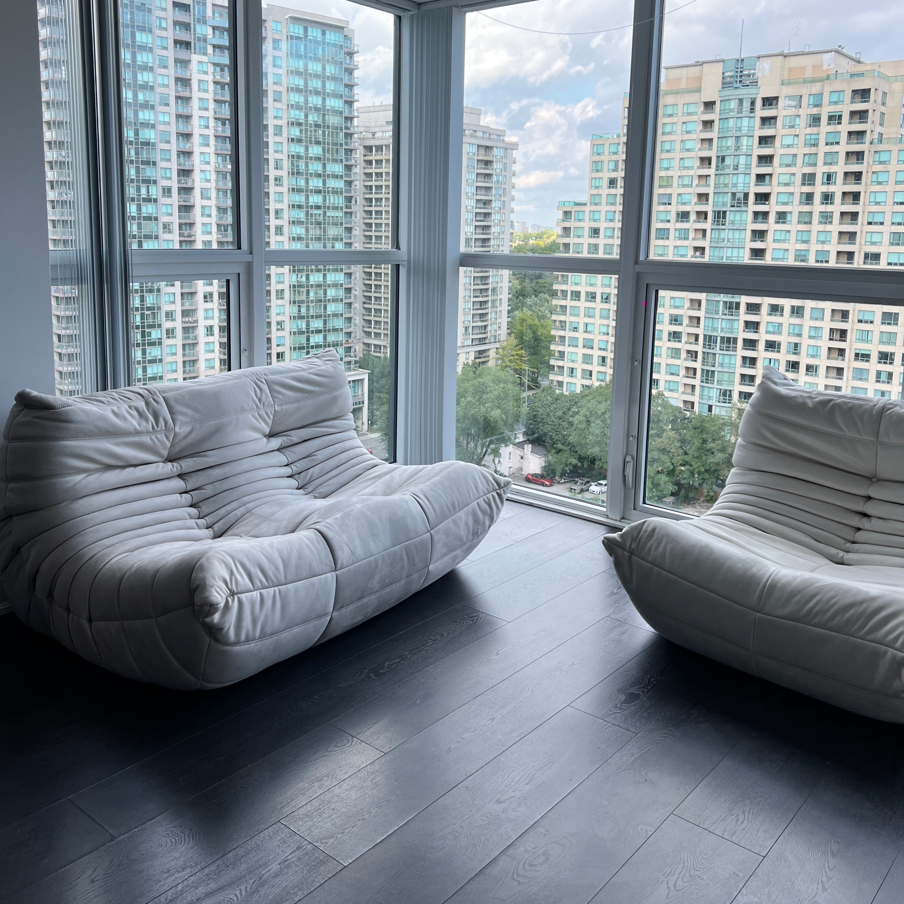 Experience ultimate comfort and unique design with the reproduction TOGO Lounger. This lounger features a distinctive low-slung, modular shape with multiple padded, quilted, and overstuffed cushions for an exceptional seating experience. Made from high-quality suede fabric and multiple density foam, it provides a cozy and ergonomic lounging experience. Its deep seats and low profile encourage a casual, laid-back seating style, making it a perfect addition to any living space.