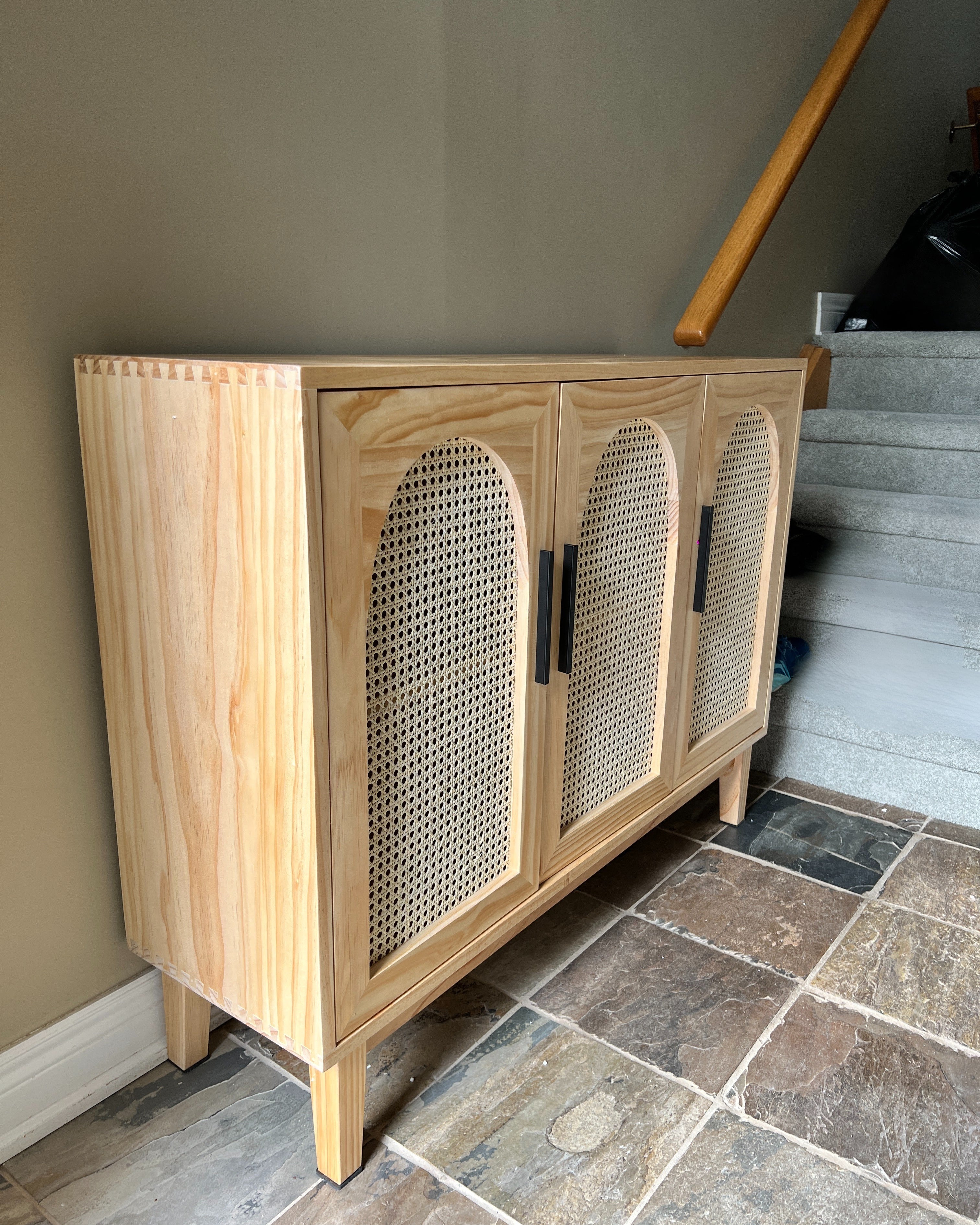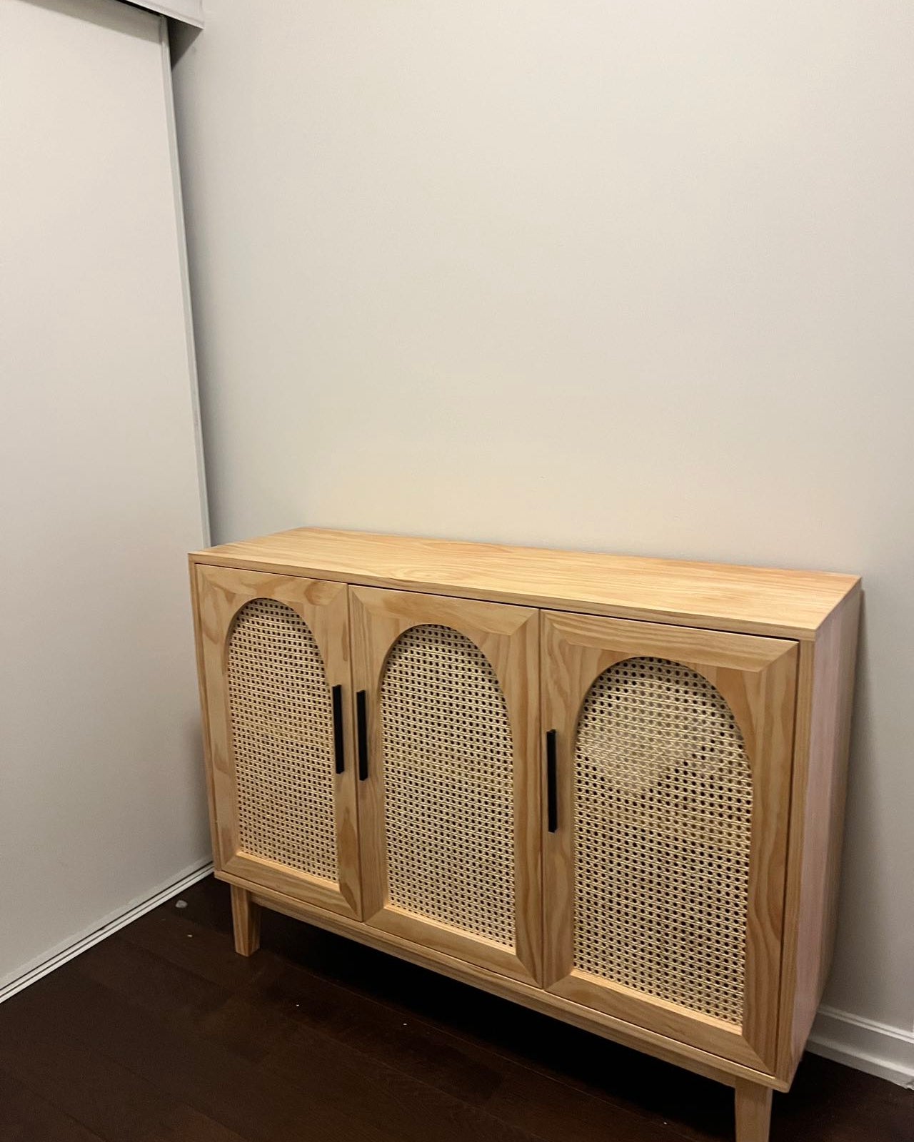 - Elegant Design: Modern classic with arched doors and rattan detailing.