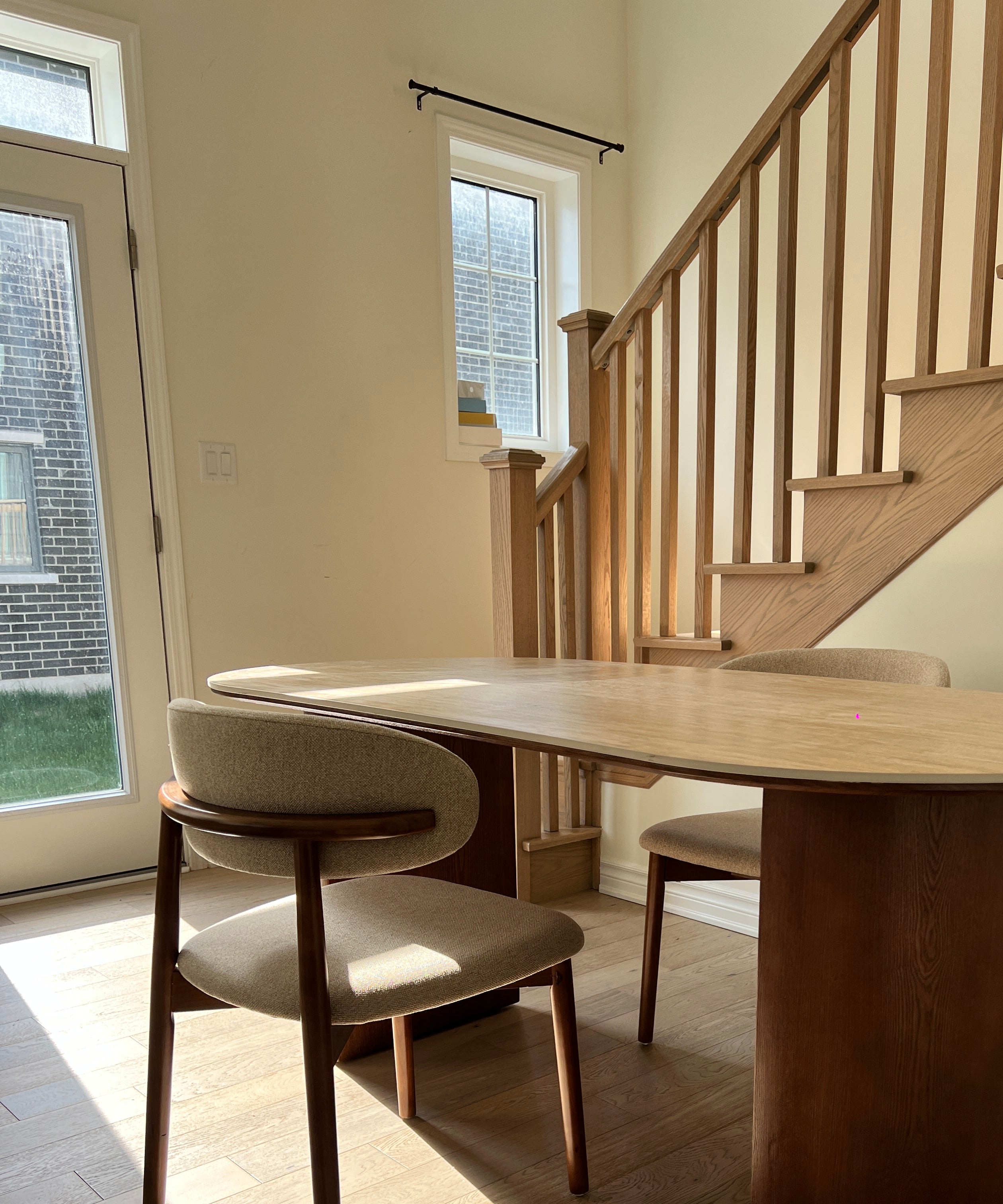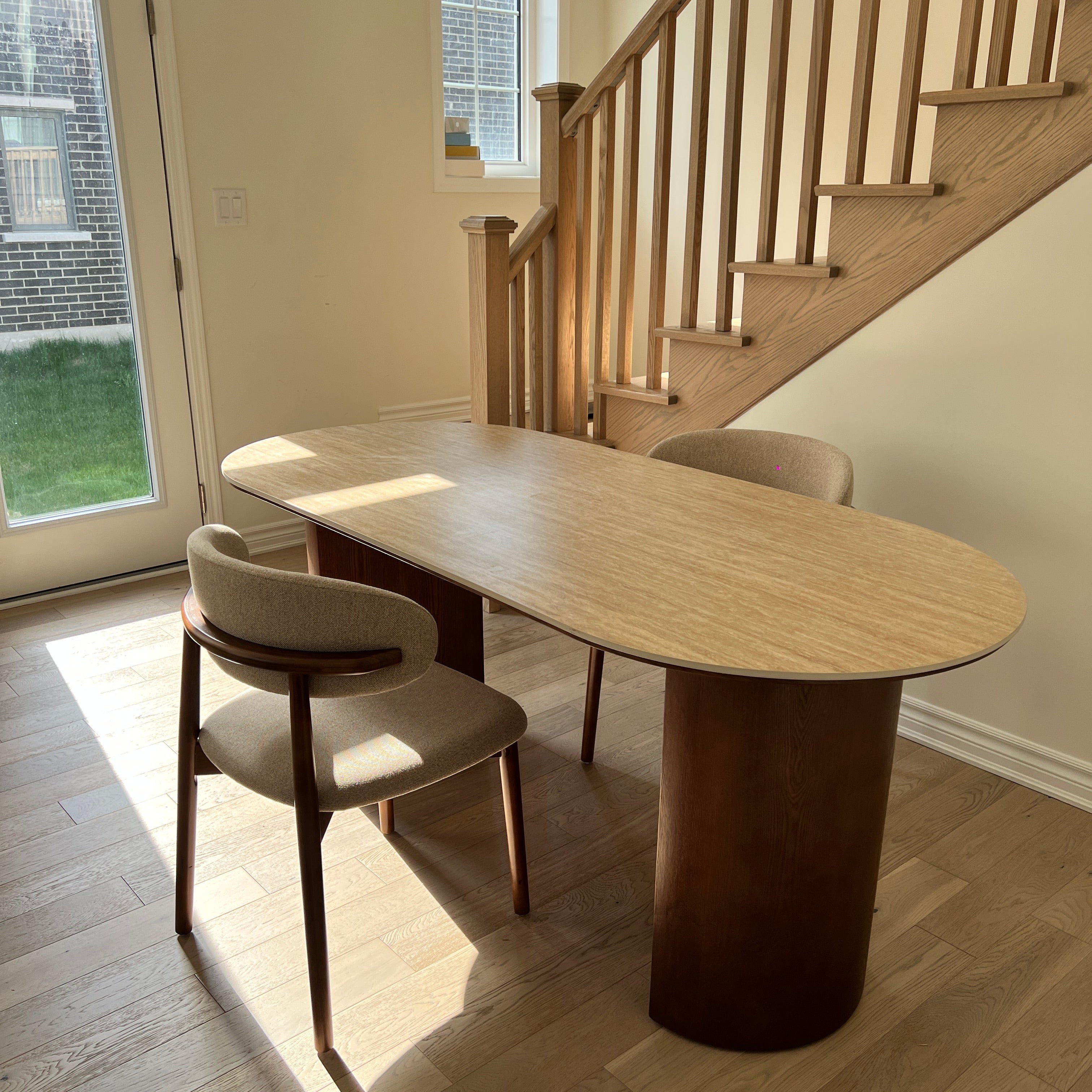 The standout feature of the Crescent Grove Dining Table is its unique dual pedestal base. Each pedestal boasts a fluted design that adds texture and sophistication, creating a harmonious balance between modern aesthetics and classic charm. The sturdy construction ensures durability, making it a perfect centerpiece for both daily meals and special gatherings.
