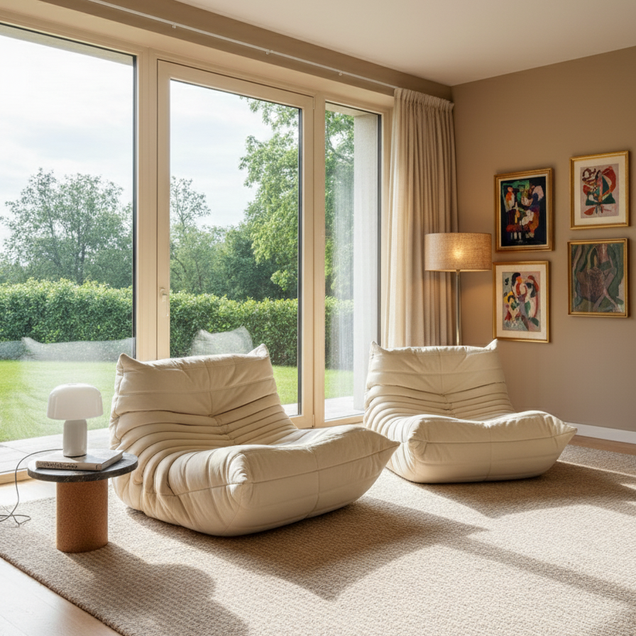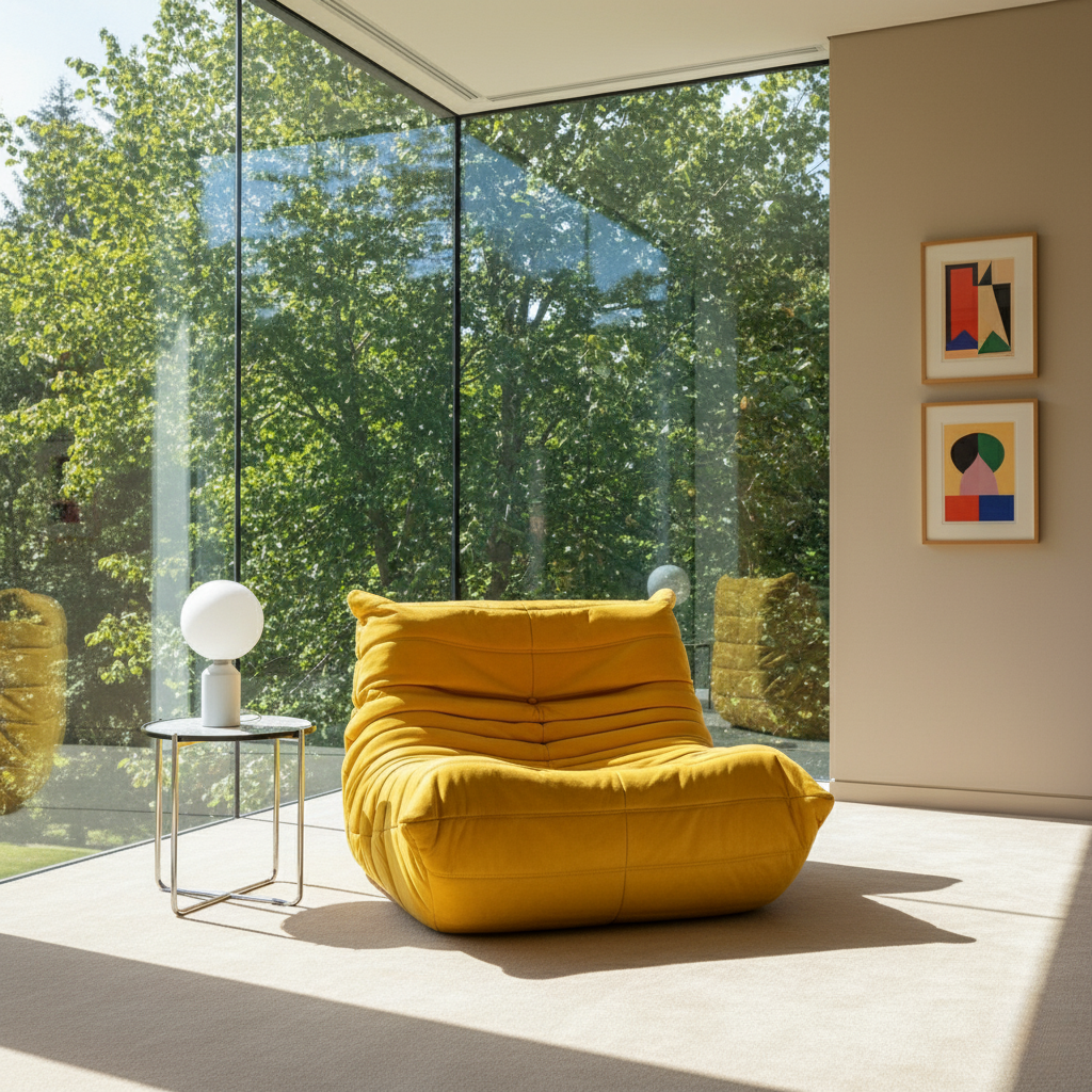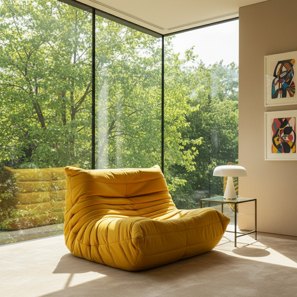 The reproduction TOGO lounger is known for its unique and instantly recognizable design. It features a distinctive low-slung, modular shape with multiple padded, quilted, and overstuffed cushions. Its appearance is characterized by its casual, relaxed, and organic form, with no sharp angles or rigid lines. The lounger is renowned for its exceptional comfort. Its multiple density padded cushions provide a cozy and enveloping seating experience, and the ergonomic design ensures that you can relax and lounge comfortably for hours. The sofa's deep seats and low profile encourage a casual and laid-back seating style.